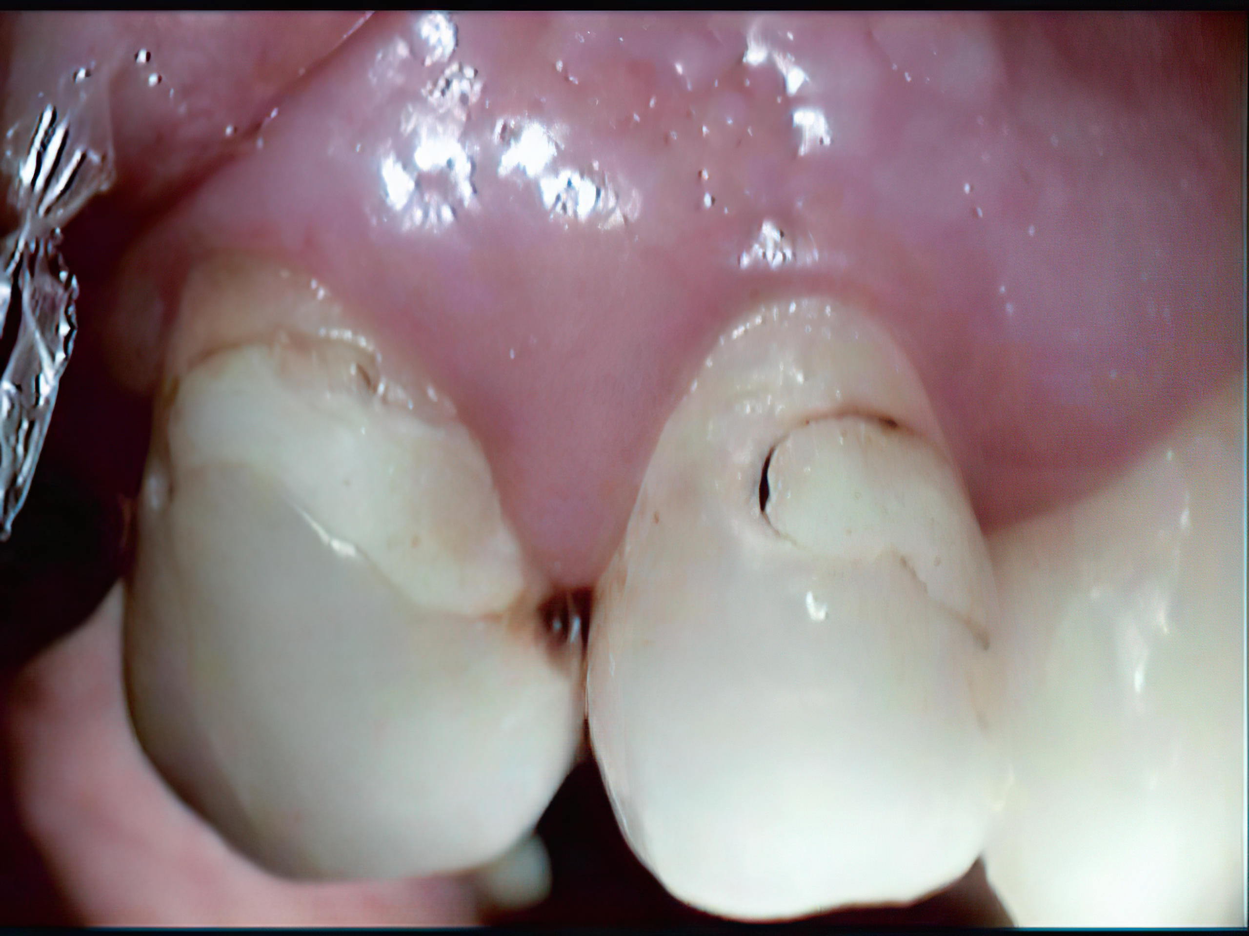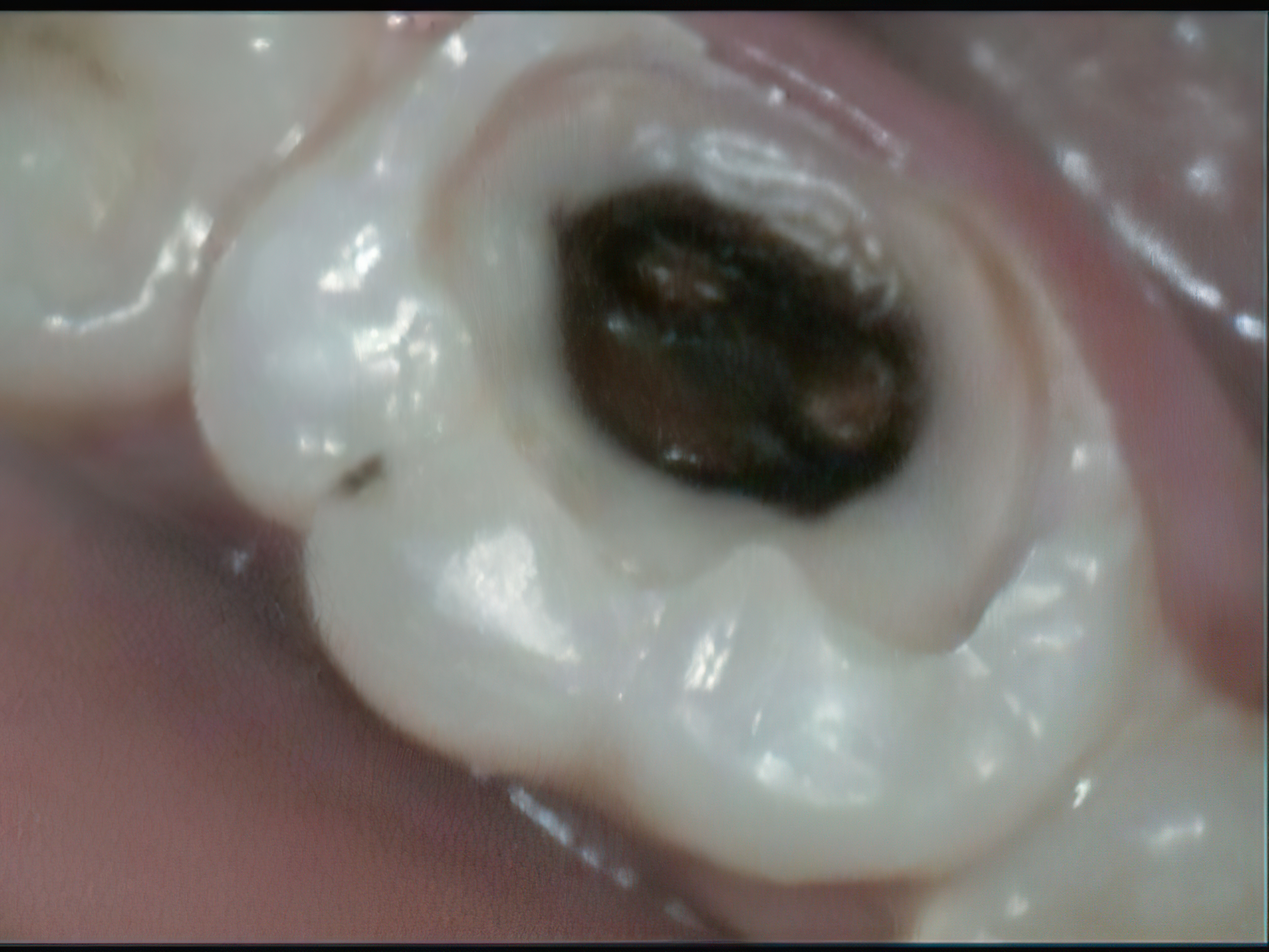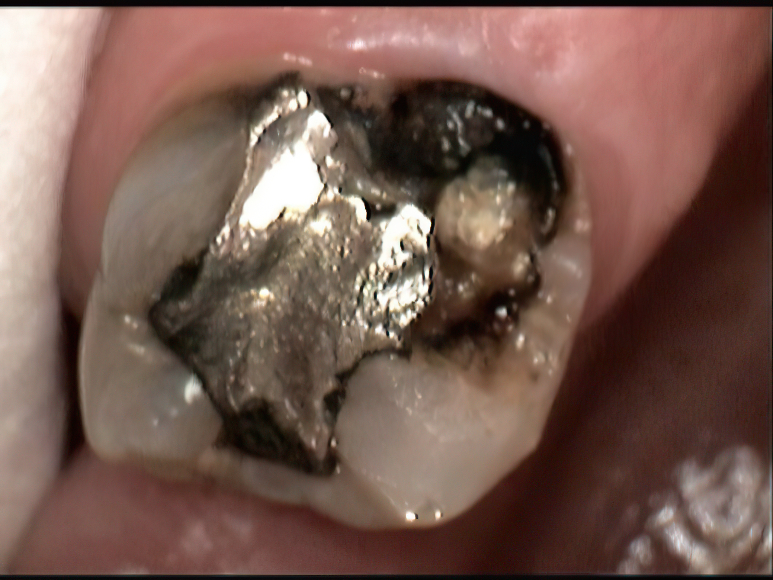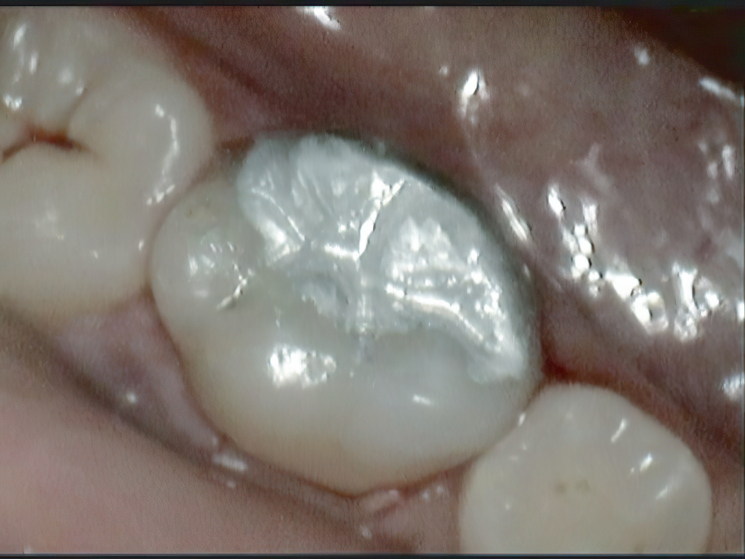 Large white molar filling